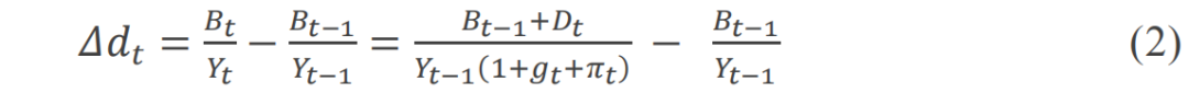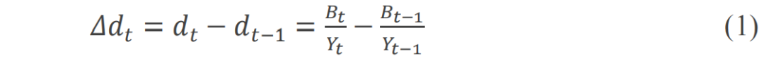 杠杆率dt=Bt/Yt,其中Bt为第t期的政府债务余额,Yt为第t期的名义GDP规模,杠杆率的变化(Δdt)可表述为: