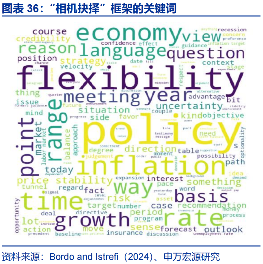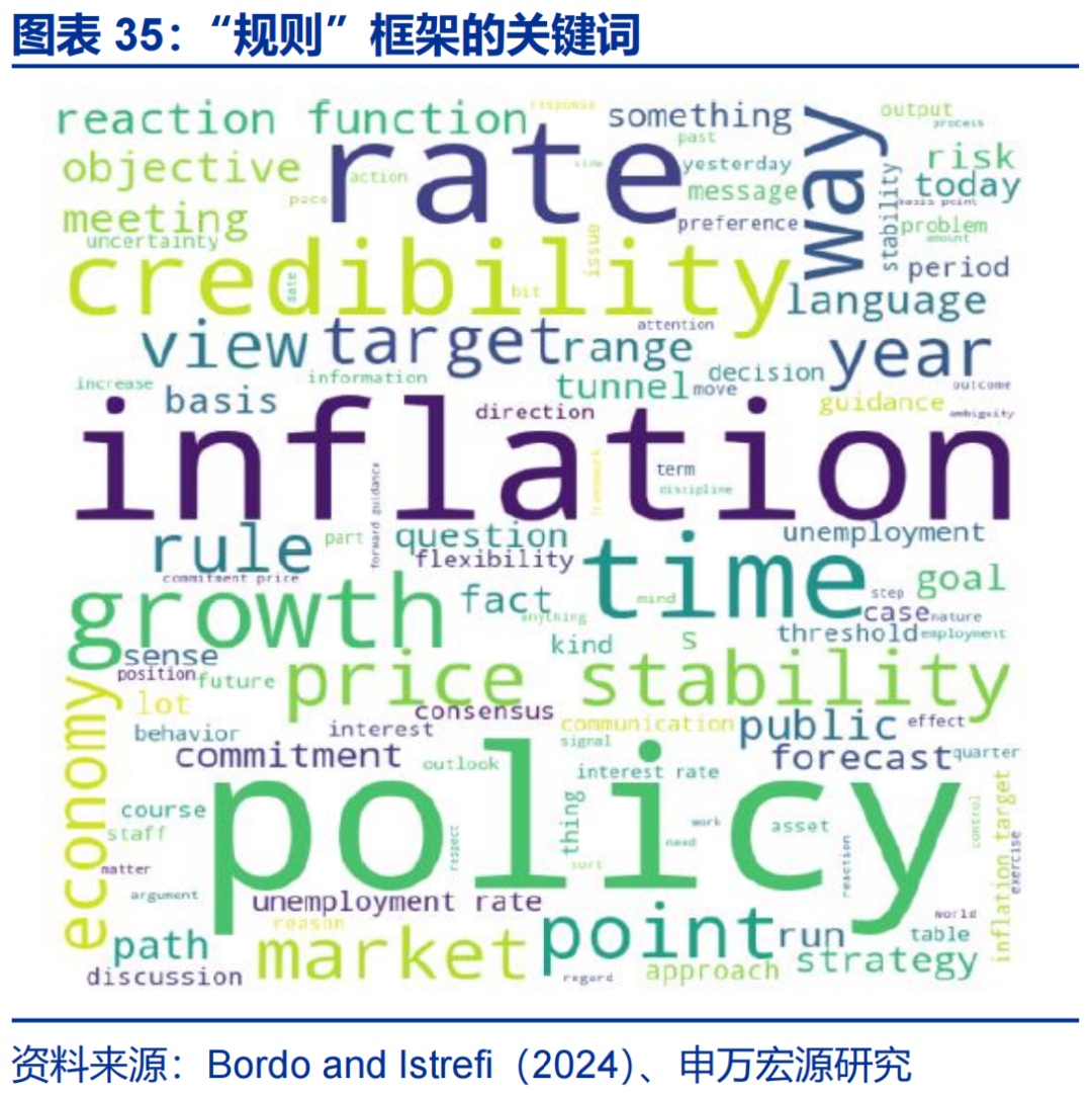 上世纪90年代初以来,美联储越来越注重规则(rule)的重要性,但2008金融危机之后,规则正让位于弹性(flexibility)。一般而言,基于规则的框架更注重政策可信度和通胀上行风险,而基于弹性的框架更关注增长的下行风险——进而抬升了通胀脱锚的风险。基于词频的量化研究表明,后金融危机时代,随着通胀成为软约束,规则的重要性在下降(Bordo et al.,2024)。当下,虽然通胀已经回归,但特朗普时代的政策不确定性依然较高,美联储能否重建基于规则的框架仍是有个疑问!