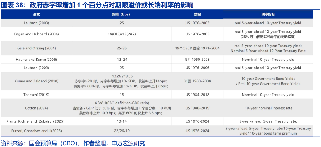 政府去杠杆可以降低长期中性利率,还可以压降期限溢价。原理上,政府杠杆率增加代表宽财政,所以会增加国债供给,抬升中性利率。实证研究也显示,美国政府杠杆率每增加1个百分点,10年期美债利率(或10年期限溢价或者5年-5年远期美债利率)或上行2-6bps。基本财政赤字率每增加1个百分点,10年美债利率或上行12-35bps。